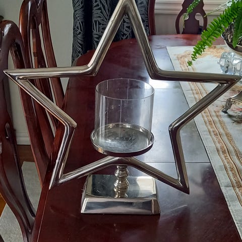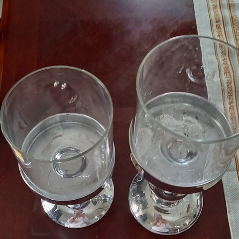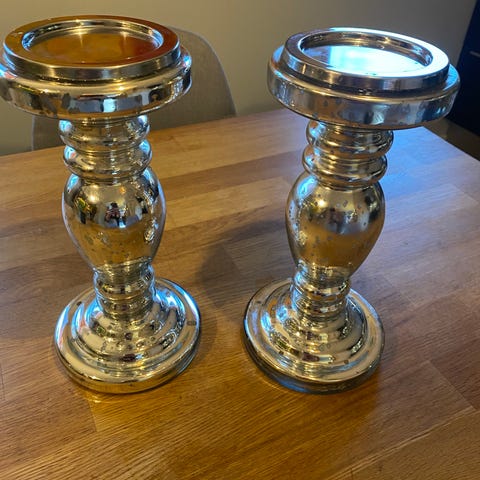 Det er et merke i den ene lysestaken og et par striper i den andre, men det er lite synlig på avstand.
