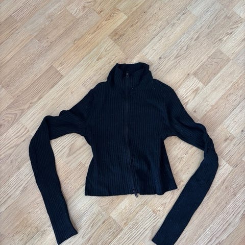 Svart fluffy og myk cardigan, med svarte paljetter i for en litt sparkly look.