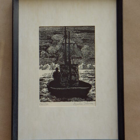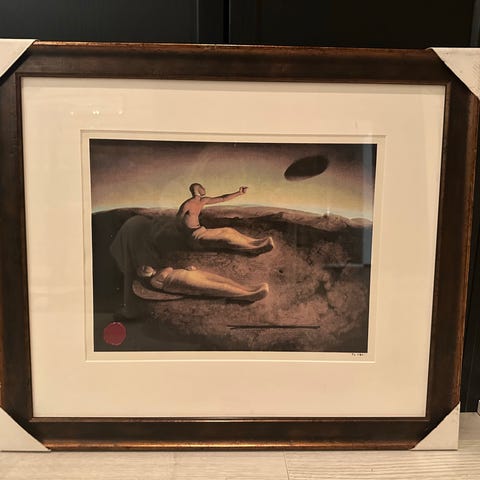 Glasstrykk av Odd Nerdrum. Tittel : Pike med dukke. Str: 87 cm x 74 cm med rammen