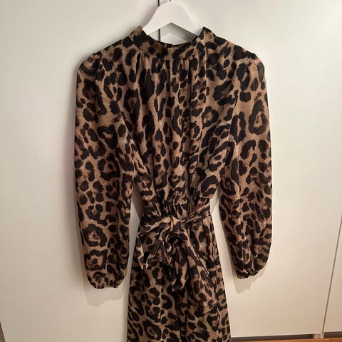 Fin brun kjole str 42 Kr 120, brukt kun 1 gang så fremstår som ny. Tynt lekkert stoff, litt sånn silke aktig stoff som ikke krøller så lett. Med knyte belte, lukkes med knapper oppe bak, korte ermer. Romslig modell. Fra Gina Tricot. Kan sendes Kr 57 via posten uten sporing/forsikring, via fiks ferdig eller avtale overlev Oslo. Har Vipps. Dyr og røykfritt hjem
