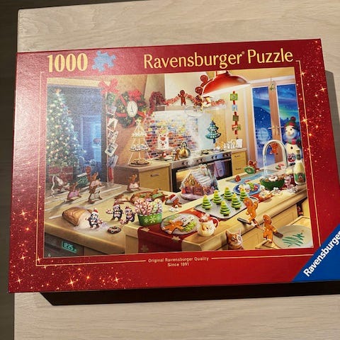 Puslespillet er behandlet med Puzzle Conserver også limt på en plate. Deretter lagde jeg en sort ramme til det. Rammen er 18mm tykk ut fra vegg og 45mm bred.