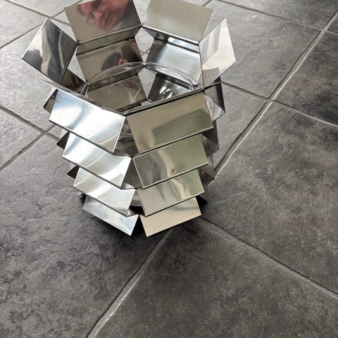 Vi har fått inn for salg en fin serviett holder i børstet stål, 18 x 7 x 10 cm.