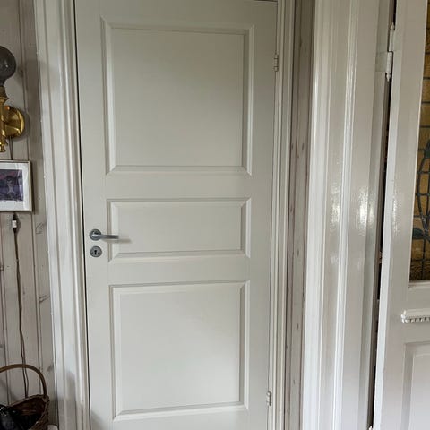 Ønsker å kjøpe et hvitt/grått dørblad 72,5 x 198,5 med den viste typen hengsle.