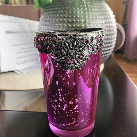 Lite skår på ene glasset, ikke noe man legger merke til.
