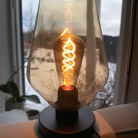 «Smoked» lyspære glir fint inn i et moderne hjem, industrielt design. Styrken er 3 Wt.