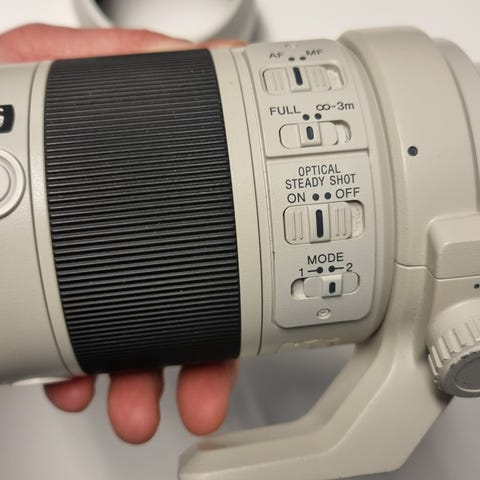 Objektivet er såpass tungt at det helst bør hentes, men kan eventuelt sendes med posten for kjøpers regning og risiko.