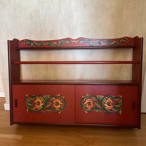 Rosemalt hengeskap tilsalgs , fra 1980 tallet