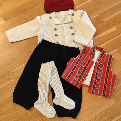Vi strikker på bestilling om du ønsker bunaden i annen størrelse (1/2 - 6 år). Send en melding for mål og pris.