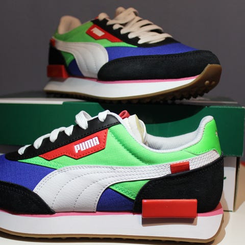 Skoene er ubrukt, lappen er fortsatt på.