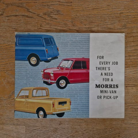 Gammel Morris Minor 1000 brosjyre selges kr 300,-