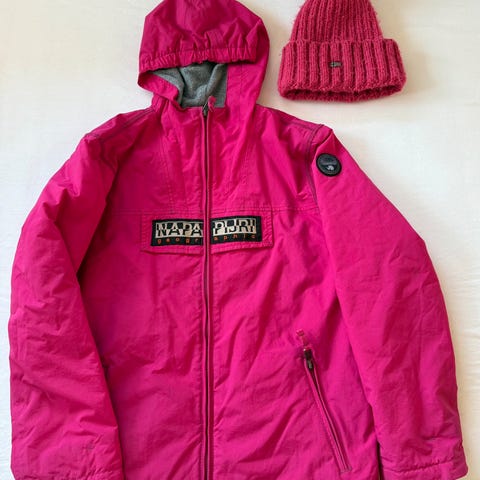 Brukt Napapijri anorakk (rosa) str. 152 (12 år) selges. Eventuell porto kommer i tillegg. Glidelåsen fungerer som den skal med unntak av at glidelåshempa mangler.