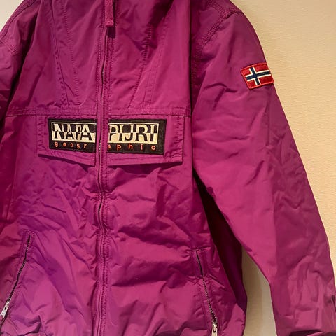 Lite brukt Napapijri jakke (rød) str. 162 (14 år) selges. Eventuell porto kommer i tillegg.