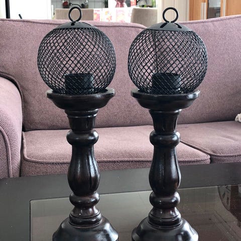 2 Prisme telysestake med krok til å henge. Lengde ca 50 cm.