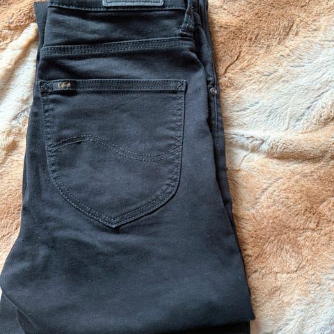 Lee Bukse i blå farge, størrelse S for kvinner. Laget i denimmateriale. Designet for hverdagsbruk med klassisk fem-lomme-stil.