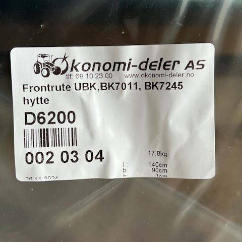 Frontrute til MF 390 serie feil bestilt selges , ruta er aldri brukt, den er kjøpt ny hos Økonomideler