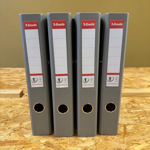 - To A4-permer, med to ringer. Disse to er brukt og har noe slitasje på plastlommer på utsiden i form av små bulker/skrap (se bilder), samt noe slitasje på hjørnene.