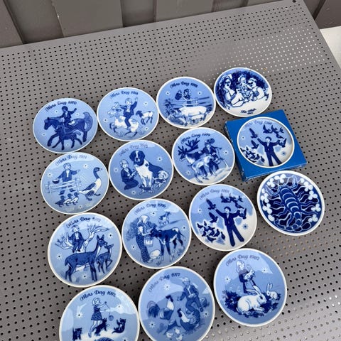 Vakker håndlaget og signert keramikkserie fra Kypros ca 1980, med fredsduemotiv.
