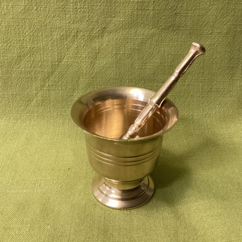 Mortere i messing. 15, 10,5 og 6 cm høye. Selges hver for seg eller samlet. 400kr,200kr og 150kr. Samlet 650kr.