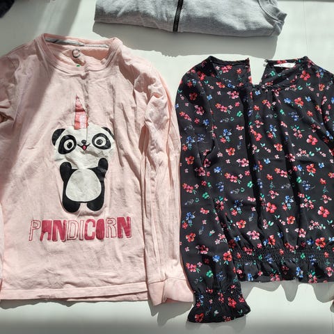 Strikkejakke og tynn genser er størrelse 150, hele og pene.