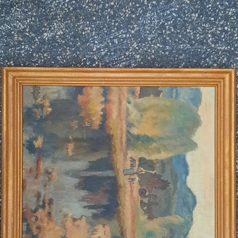 Flott maleri av Flatdal i Telemark selges. Maleriet er i flott stand og er ett originalt lerret-maleri. Bildet er malt fra Nutheim og er kjøpt på galleri på Notodden for litt over 20 år siden.