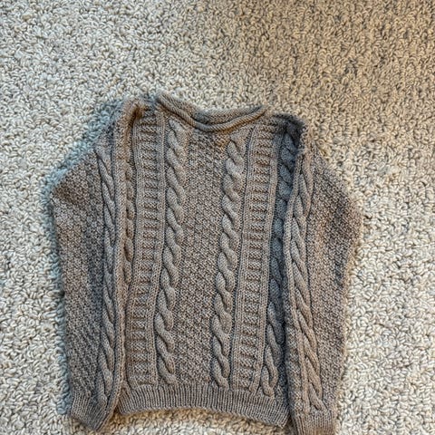 Hjemmestrikket deilig myk ullgenser i grå/ blå selges, i meget pen stand.