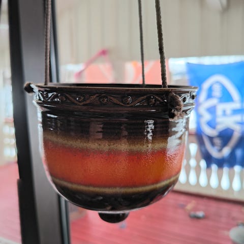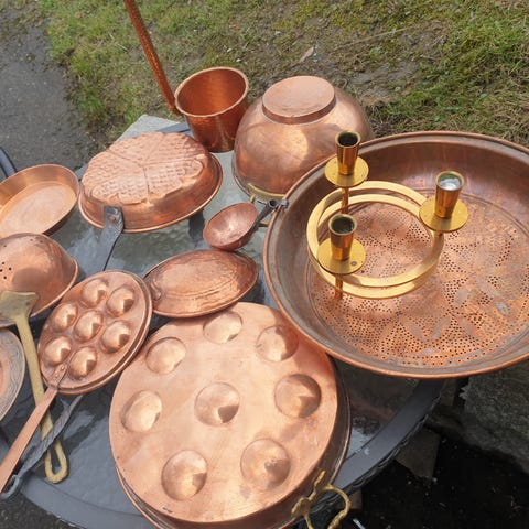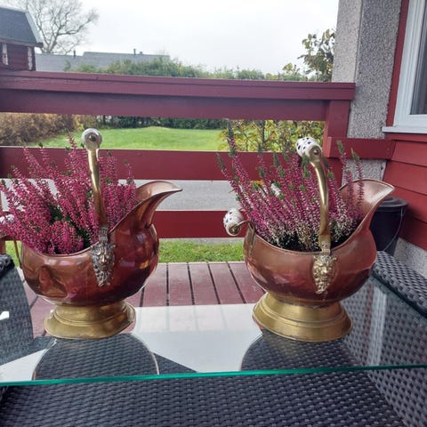 Blomsteroppheng i kobber og messing.