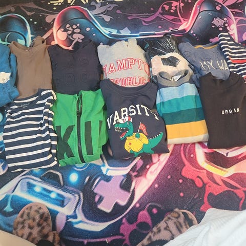 Selger en ubrukt strikkegenser i størrelse 7-8 år.