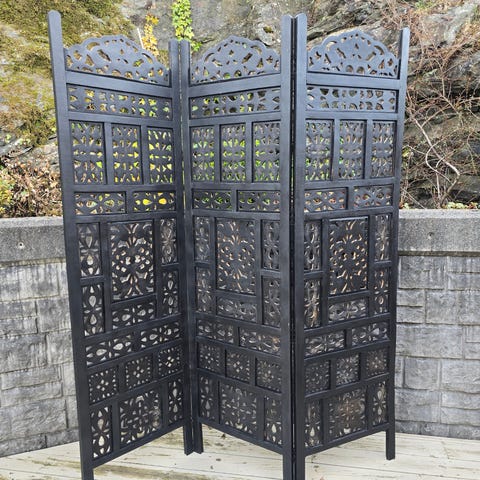 vidaXL Romdeler/espalier 3 paneler heltre gran svart 121x180 cm(316482)