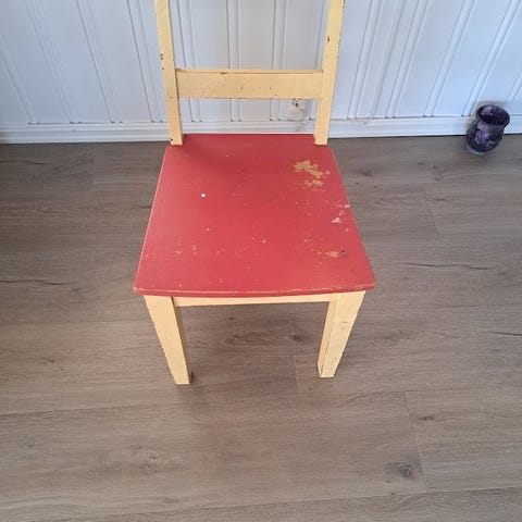 Selger en flott håndlaget trestol med utskjæringer. Orntlig solid og god å sitte på og mange fine detaljer, se bilder.