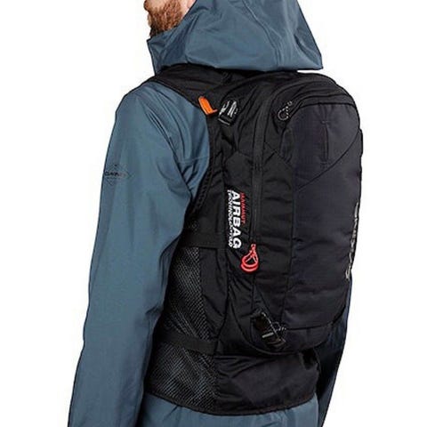 Skredsekk. Skredsøker, stang og spade.