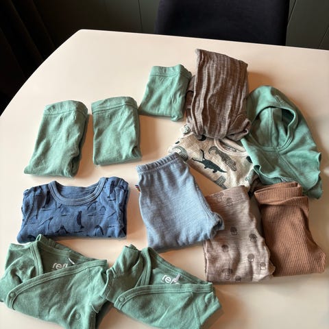 Det vil si ca 12,- pr plagg ved kjøp av hele pakken. Selges samlet.