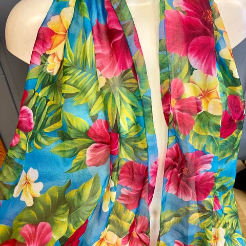 Chiffon skjerf/tørkle, blomstret - lilla, blå,gul, grønn