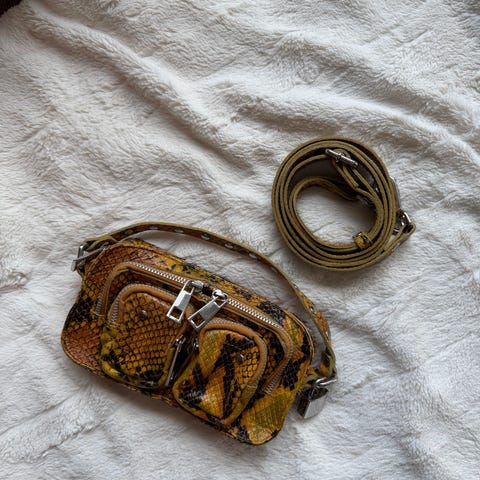 Ny Núnoo veske i fargen Coral. Nypris 1500kr. Kjøpt på mittlillehjem i Oslo. Helt ny, aldri brukt, men tatt av prislappen.