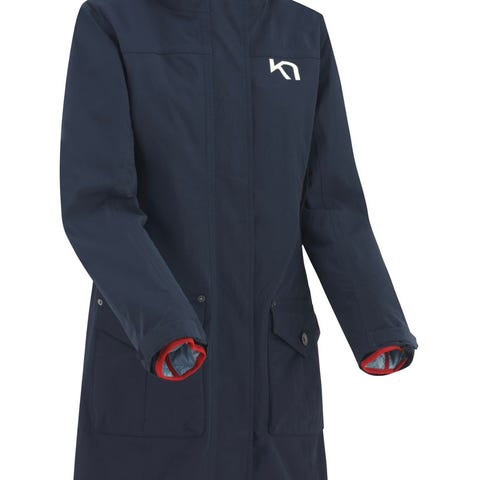 "Kari Traa Dalane-parkasen er en lang vind- og vannavstøtende 3-i-1-jakke som raskt blir en favoritt i regnet. Funky ytterjakke i tolags materiale med mange lommer og justerbar hette. Innerjakke med isolerende lag i 100 % polyester for ekstra varme. Bruk dem hver for seg eller sammen – denne duoen er klar for alt!