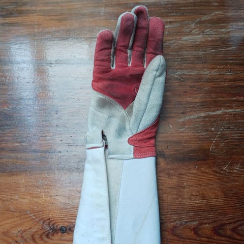 Selger et par gamle skinnhansker som med stor sannsynlighet er tidlige ishockeyhansker, basert på konstruksjon, polstring og beskyttelse.