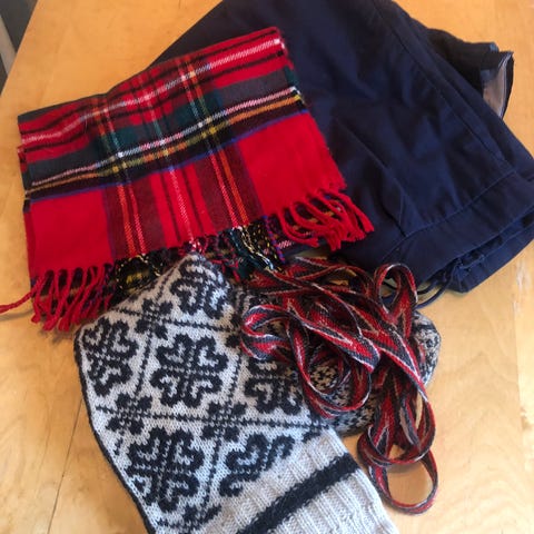 Retro, lys blå hals. Ikke i ull. Den er hel, men har noen merker øverst.