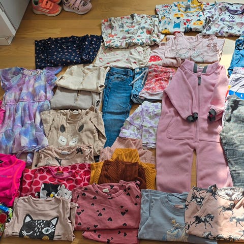 Klespakke med veldig pent brukte klær I str 92, også noe nytt og ubrukt. Merker som Lindex, Pomp de lux, Minymo, NameIt. 10 flotte plagg som er minimalt brukt. Inkludert 1 rutete pysj.