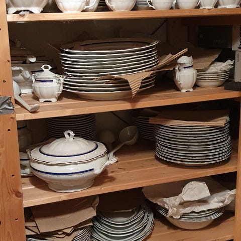 Vakker samling av franske terriner fra 1800-tallet- kjøpt hos antikvitetshandler Nina Hartmann.