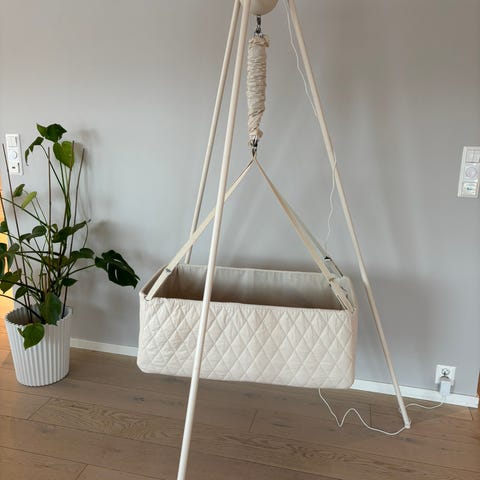 Vi leier ut en pent brukt Moonboon da vårt barn ikke har behov for den lenger. Vuggen ble kjøpt ny i august 2022.