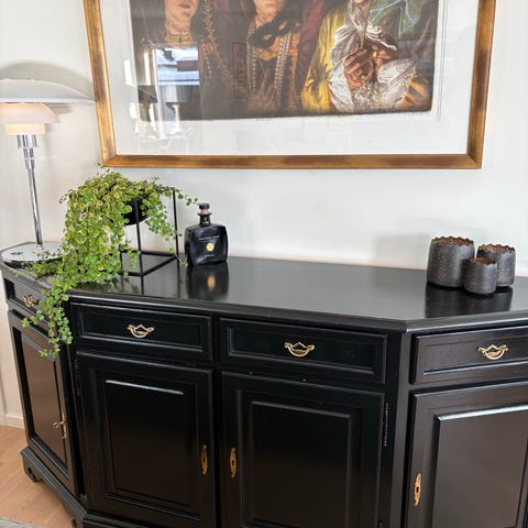 Fint eikeskap med lys og glassdører selges. Heltre