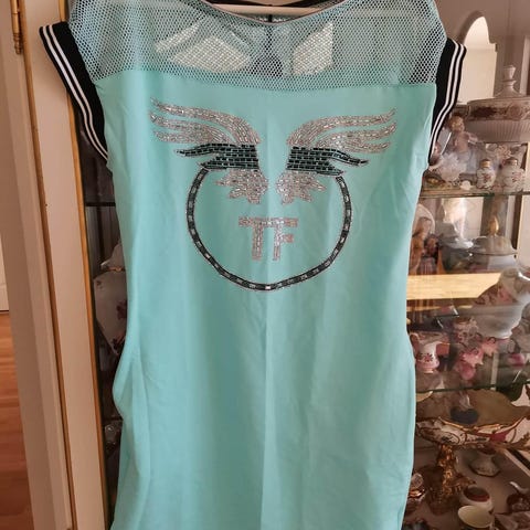 Flott lyseblå kjole med detaljer selges helt nytt. Kan sendes eller hentes hos meg.