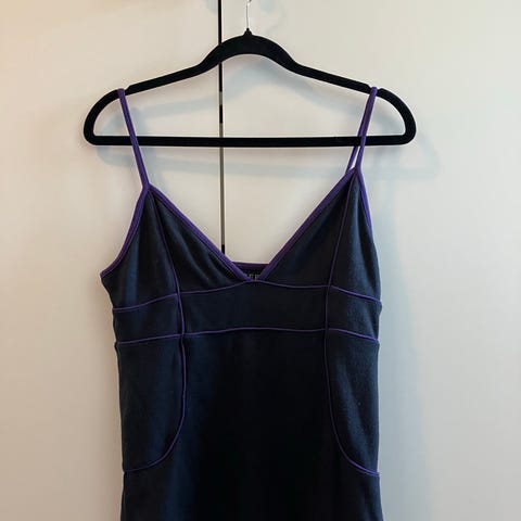 Lekker topp/singlet i svart med blonder oppe og nede, detaljer i fløyel.
