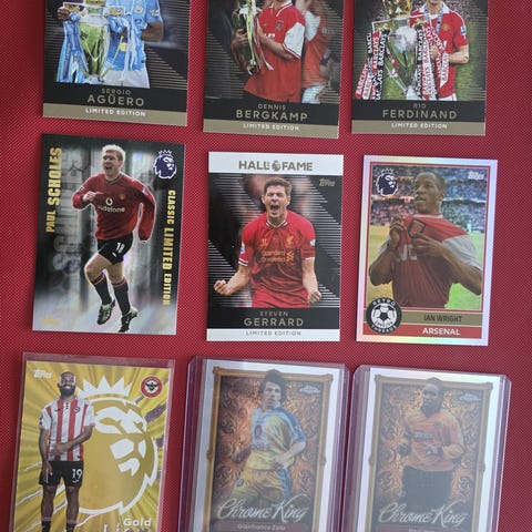 - 500kr; 1 storformat, 1 komplett sett på 80 kort, litt forskjellige fra ulike årganger Premier League og Champions League(alle forskjellige)