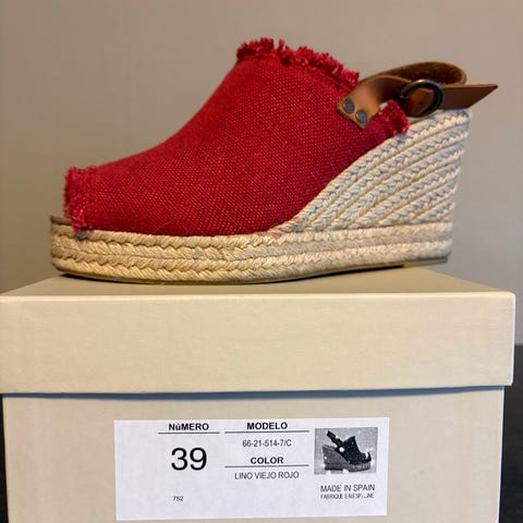 Tøffe og sexy røde sommersko, espandriller, wedges fra det spanske merket Castaner.