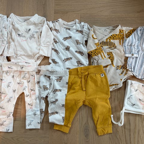 Bruuns Bazar chinos og Lindex body er ubrukt (tatt av lappene), og ikke vasket. Resten er vasket med Neutral/Milo.