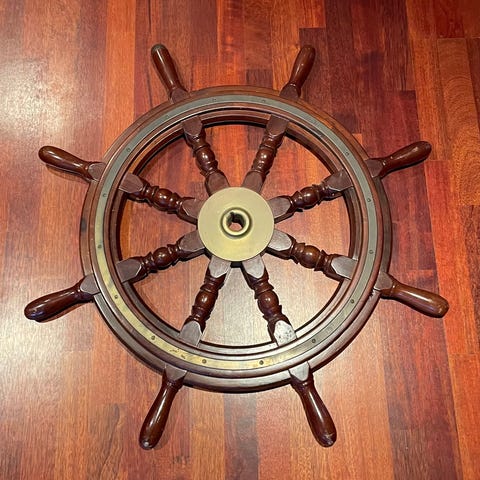 FLOTT BORD - på et skipsratt och lanterne,