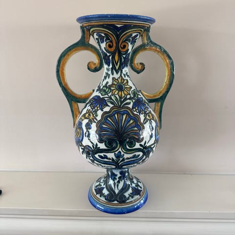 Selger en signert keramikk urne/vaske. Den har et lite stekk (se bilde).Pris 300kr.Høyde 32cm. Kan hentes i Sarpsborg eller sendes hvis kjøper betaler frakt. Ta også en titt innom mine andre annonser på Finn🌸