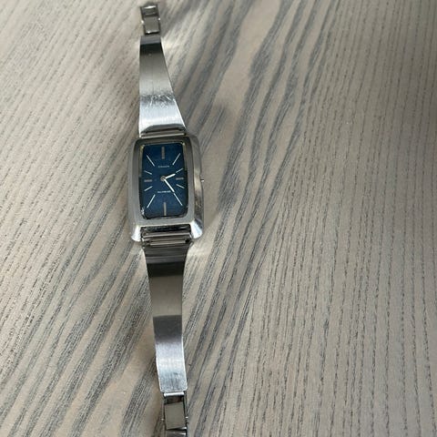 Et nett armbåndsur med blå urskive fra Anna Klein. Kjøpt i USA i 2009. Trenger en liten rens og nytt batteri