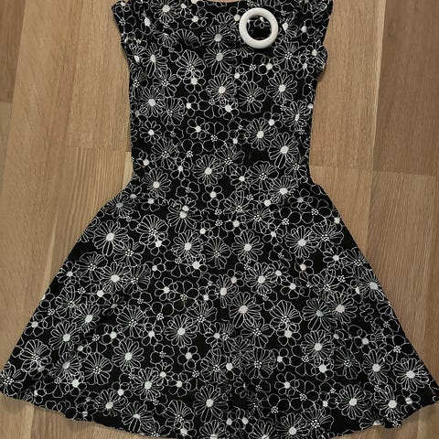 Str 6-8 år-Søt hvit kjole med fine detaljer, paljetter, tyll, glitter, selges