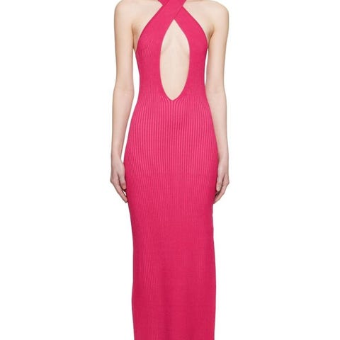 Kim Shui Studio Mesh Wrap halterkjole i brun, gjennomsiktig mesh.